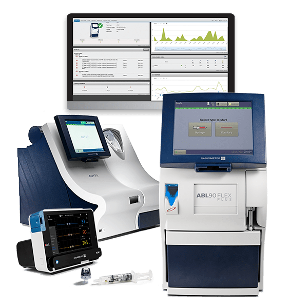 In addition to 19 critical blood gas parameters and 9 biomarkers, Radiometer offers seamlessly connected blood testing analyzers, transcutaneous monitors, and a point-of-care IT solution that automate and simplify blood sampling and data capture with: